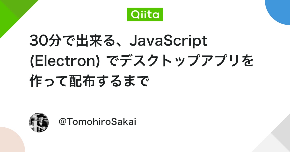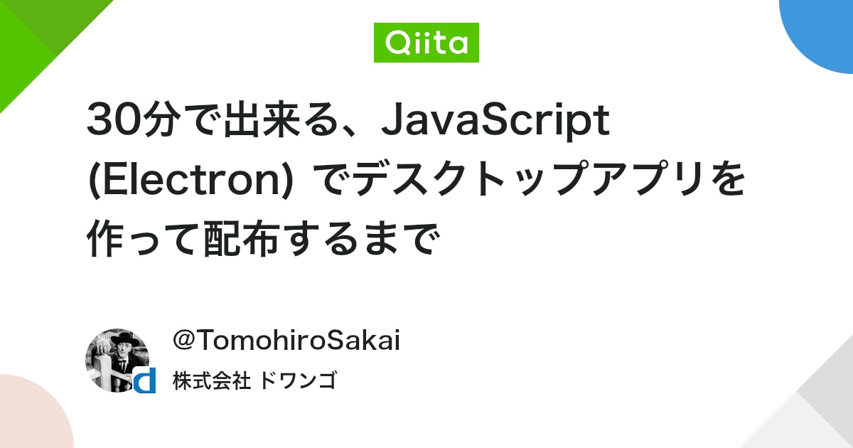 30分で出来る、JavaScript (Electron) でデスクトップアプリを作って配布するまで - Qiita